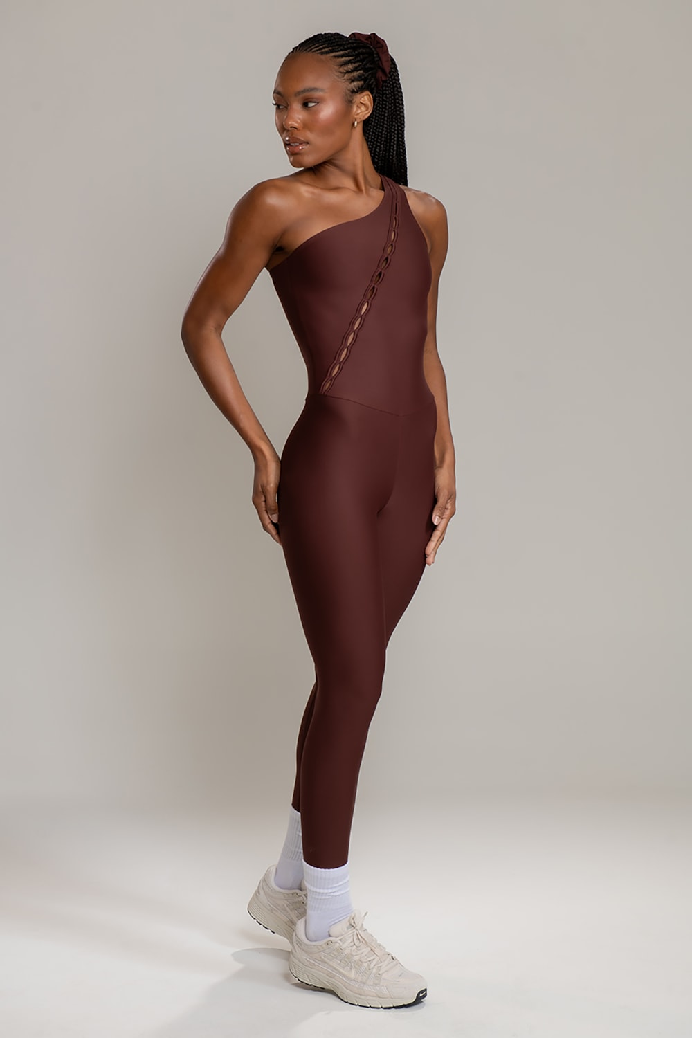 Mais do que um macacão, o SKIN SHOULDER é uma peça de impacto. Sua modelagem de um ombro só cria uma estética assimétrica e sofisticada, enquanto o detalhe vazado frontal desenha o corpo de forma única, trazendo um equilíbrio perfeito entre empoderamento e elegância. O recorte diagonal atravessa a peça como uma linha que alonga a silhueta e valoriza cada curva. O resultado é um visual escultural e ao mesmo tempo leve, que acompanha o movimento com naturalidade. Uma peça atemporal, que vai muito além do treino: combina com sobreposições urbanas e se transforma em protagonista em qualquer ocasião.
